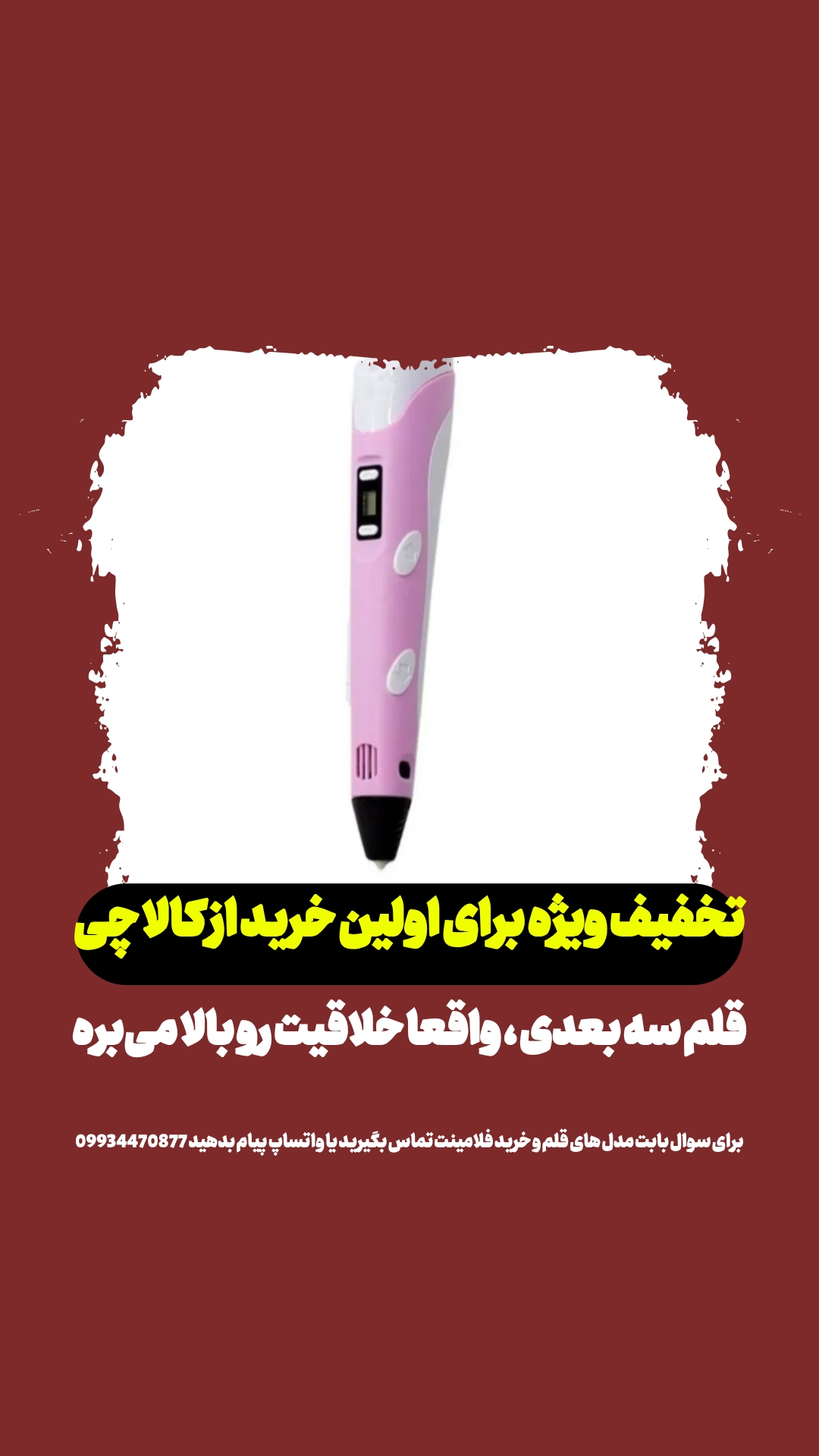 قلم سه بعدی ، برای خلافت خیلی عالی هست و سرگرم کننده هست ، بچه ها خیلی علاقه زیادی به این قلم ها پیدا میکنن و از گوشی و تلویزیون و... دوری میکنن ، این قلم برای سنین 6 سال به بالا هست .